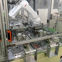 - 3 Robots de 6 eixos com capacidade de 3 Kg para possibilitarem, carga dos conetores nos ninhos, transferência dos terminais conformados para o ninho, descarga de conetores para os tabuleiros